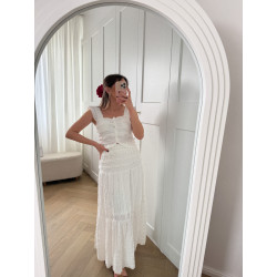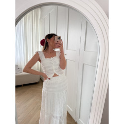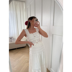 Składa się z spódnicy oraz dopasowanego topu z miseczkami i guziczkami rozpinanymi po całej długości.