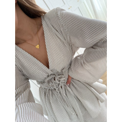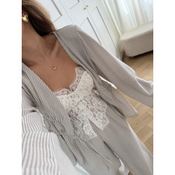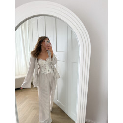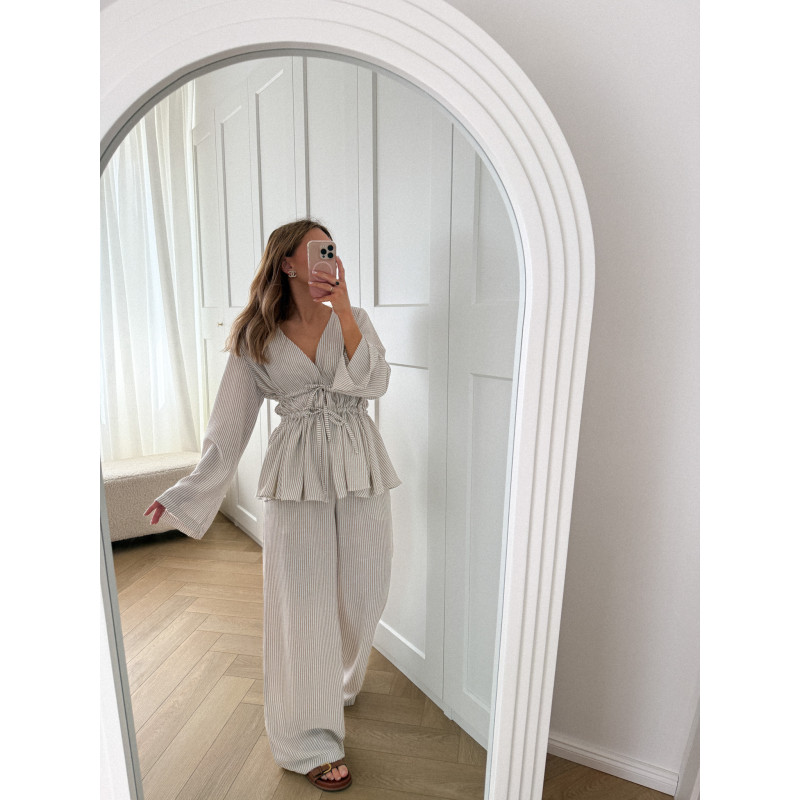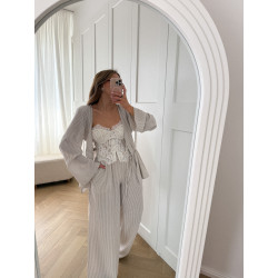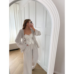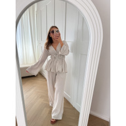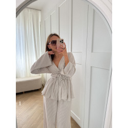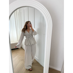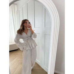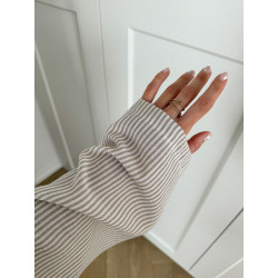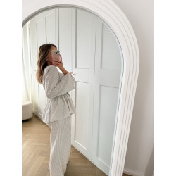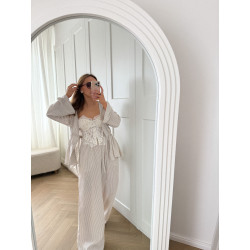 Przepiękny komplet w beżowe paseczki to połączenie klasyki, wygody i subtelnej elegancji w letnim wydaniu.